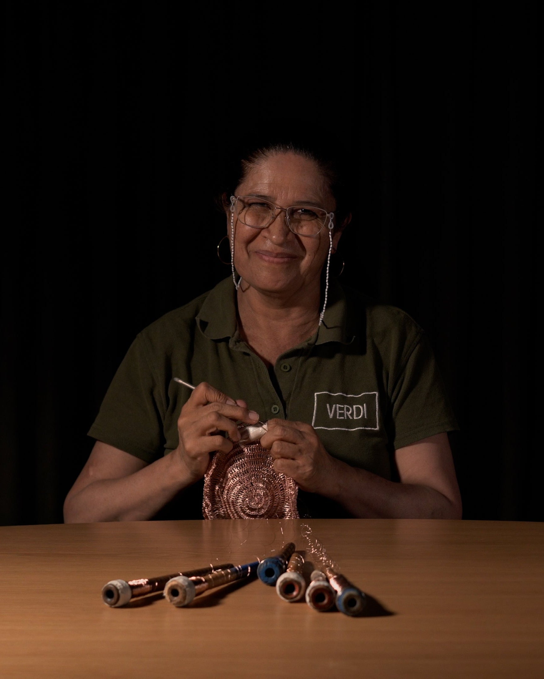 Each piece is handwoven in 15 days at The VERDI Atelier, using copper, silver-plated metal, alpaca and organic silk threads in five iconic weaves: Nido, Pineapple, Seashell, Andes and Sur. Our hand woven mochilas have become heirlooms to pass on from generation to generation, maintaining VERDI’s identity alive and intact through the passage of time.
